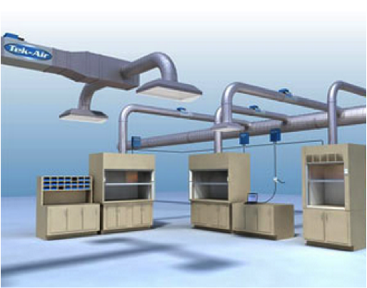 VAV系統(tǒng)是一種整體建筑通風(fēng)系統(tǒng),其中包含傳感器,可根據(jù)窗扇位置調(diào)節(jié)排氣和供氣(圖片由Tek-Air提供)。例如,如果一個人在通風(fēng)櫥里完成了他們當(dāng)天的工作,并且通風(fēng)櫥有一個VAV系統(tǒng),則關(guān)閉窗扇會啟動一個自動(和安全)的響應(yīng),關(guān)閉通向通風(fēng)櫥排氣的閥門,減少回火的空氣量。它還向供氣發(fā)送信號,告訴它調(diào)低進入實驗室的空氣量。通過這個動作,調(diào)節(jié)和耗盡的空氣量都降低了; 因此,當(dāng)窗扇降低時,實驗室可以節(jié)省能源!