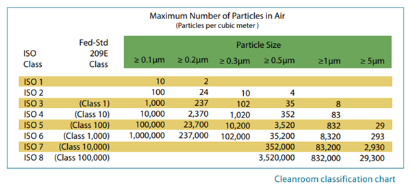 100級(ISO 5)-使用HEPA過濾器并不能保證潔凈室工作臺內(nèi)部將達(dá)到100級(ISO 5)。您需要在工作臺內(nèi)保持適當(dāng)?shù)臍饬鳌?br />
