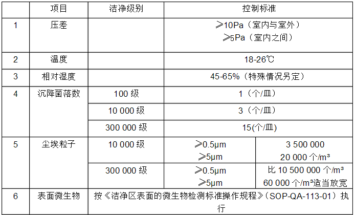 4.3.2 潔凈管理室應(yīng)達(dá)到除空氣潔凈度外的三十萬級要求。 4.4 監(jiān)測頻次